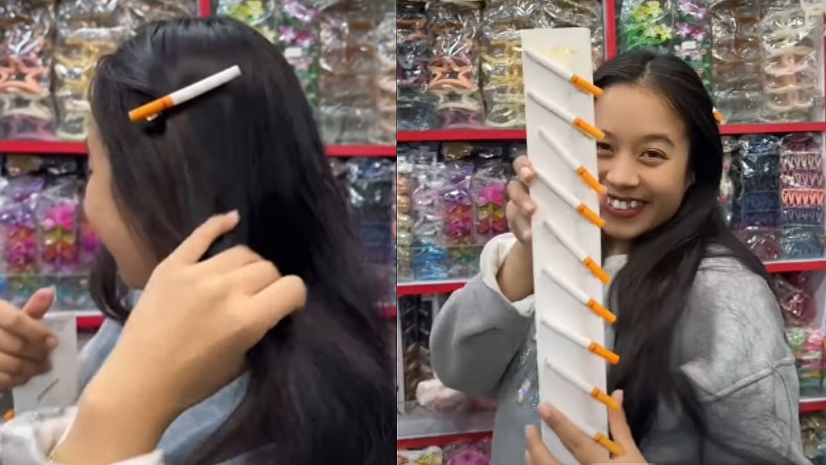 A video featuring a young woman flaunting a cigarette-shaped hair clip has taken the internet by storm. Shared on Instagram by user Raju Lama Tamang, the reel has caught the attention of netizens for the unusual yet creative accessory.