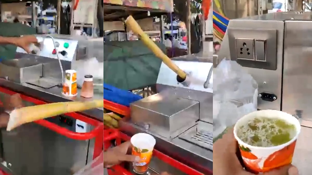 In the video, it can be seen that the seller puts the sugarcane inside the machine through a hole and juice comes out of a tap just after a few buttons are pressed. The seller priced his sugarcane juice at just ₹20.