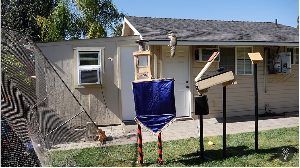 This prompted Rober to build an obstacle course -- his own perfect squirrel proof bird feeder in his own backyard to stop those squirrels from the stealing the seeds.