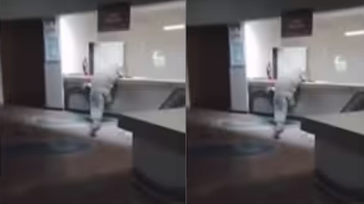 A viral video from Friday shows the nearly 12-foot reptile calmly crawling through the hotel premises before climbing onto a counter, seemingly searching for food.