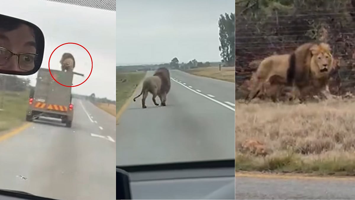 A chilling video of a lion jumping from the roof of a moving transport truck in the North West region of South Africa is going viral on the Internet. Animal protection organizations are questioning the authorities and have raised concerns about the safety and security of the wild animals during their relocations.