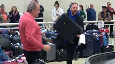 A passenger identified as Patrick Keane is going viral for expressing his happiness on reuniting with his bag after hours of wait following two canceled Southwest flights. The video shows Keane jumping with joy and climbing over the airport conveyor belt in excitement. As soon as he spot his bag rolling out on the conveyer belt, he pulled it towards him and started dancing.