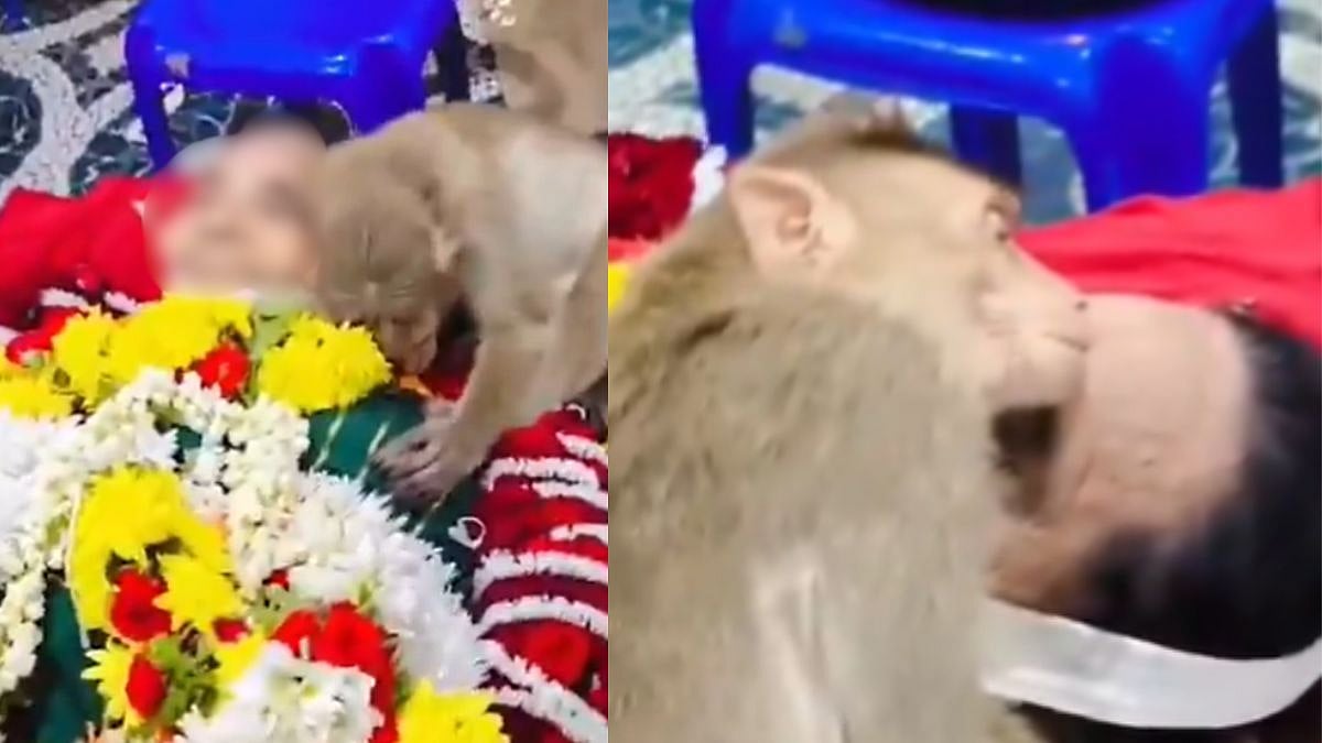 She passed away on Monday due to old age-related illnesses. When her body was placed at home for the final journey, a monkey came, hugged the body, and began crying. The video highlights the bond the animal shared with the woman and the grief it felt after losing a loved one. The video has gone viral on social media.