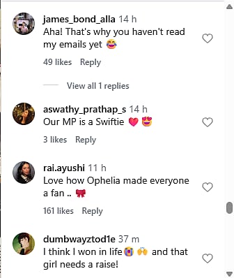 Social media users were instantly charmed by what many called the “pookie side” of Shashi Tharoor. Swifties flooded the comments section with emojis, jokes, and song references. Actor Aahana Kumra wrote, “what a cutie i meant swiftie @shashitharoor .” Another user commented, “Aha! That's why you haven't read my emails yet.”