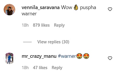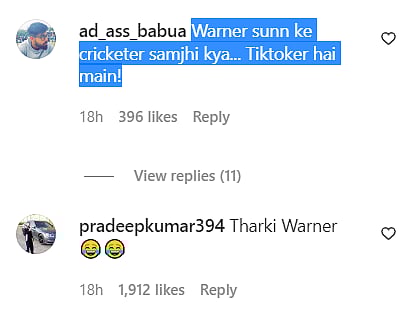 With 3.1 million view already, netizens quickly headed to the comments section of the post. One commented, "Warner sunn ke cricketer samjhi kya... Tiktoker hai main!" while another called him "Pushpa Warner".