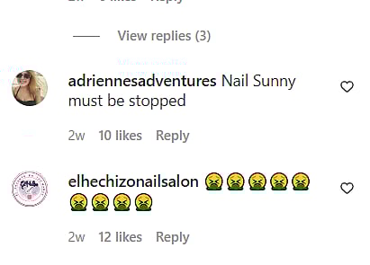 The video on Instagram has over 287K views and the comments are filled with annoyed netizens. One commenter wrote, "Nail Sunny must be stopped". Another commented with puke emojis.