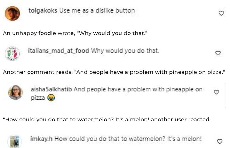 The grilled watermelon slice work as a pizza base, which the man tops up with garnishes including cheese and pepperoni. He grilled the watermelon pizza slice once again. As soon as the video was posted, viewers chimed into the comment section and dropped their reactions over the bizarre combination of watermelon and pizza.