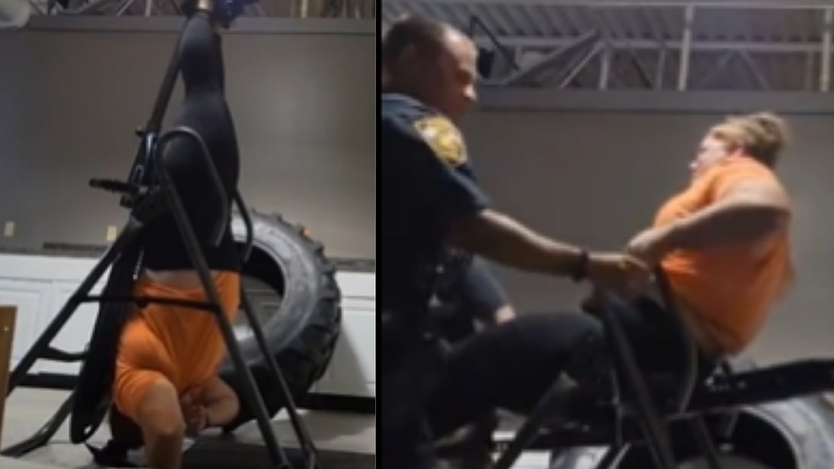 In the video which was shared on TikTok, and now doing rounds on social media, we can see her struggle hanging upside down in the gym - later getting back to normal with police support.