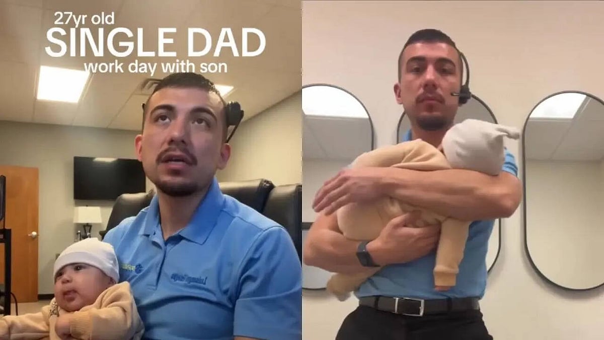 A touching video of a young single father managing office duties while caring for his baby has gone viral, earning admiration across social media platforms. The clip highlights the everyday reality of modern parenting, showing how one dad balances professional responsibilities with raising his infant son.