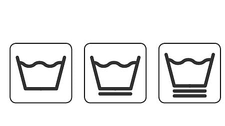 Washing tub: A stylised wash tub filled with water indicates that your clothing can be washed in a machine. Additionally, it typically indicates that the garment can be washed and spun regularly (or with the synthetic cycle).