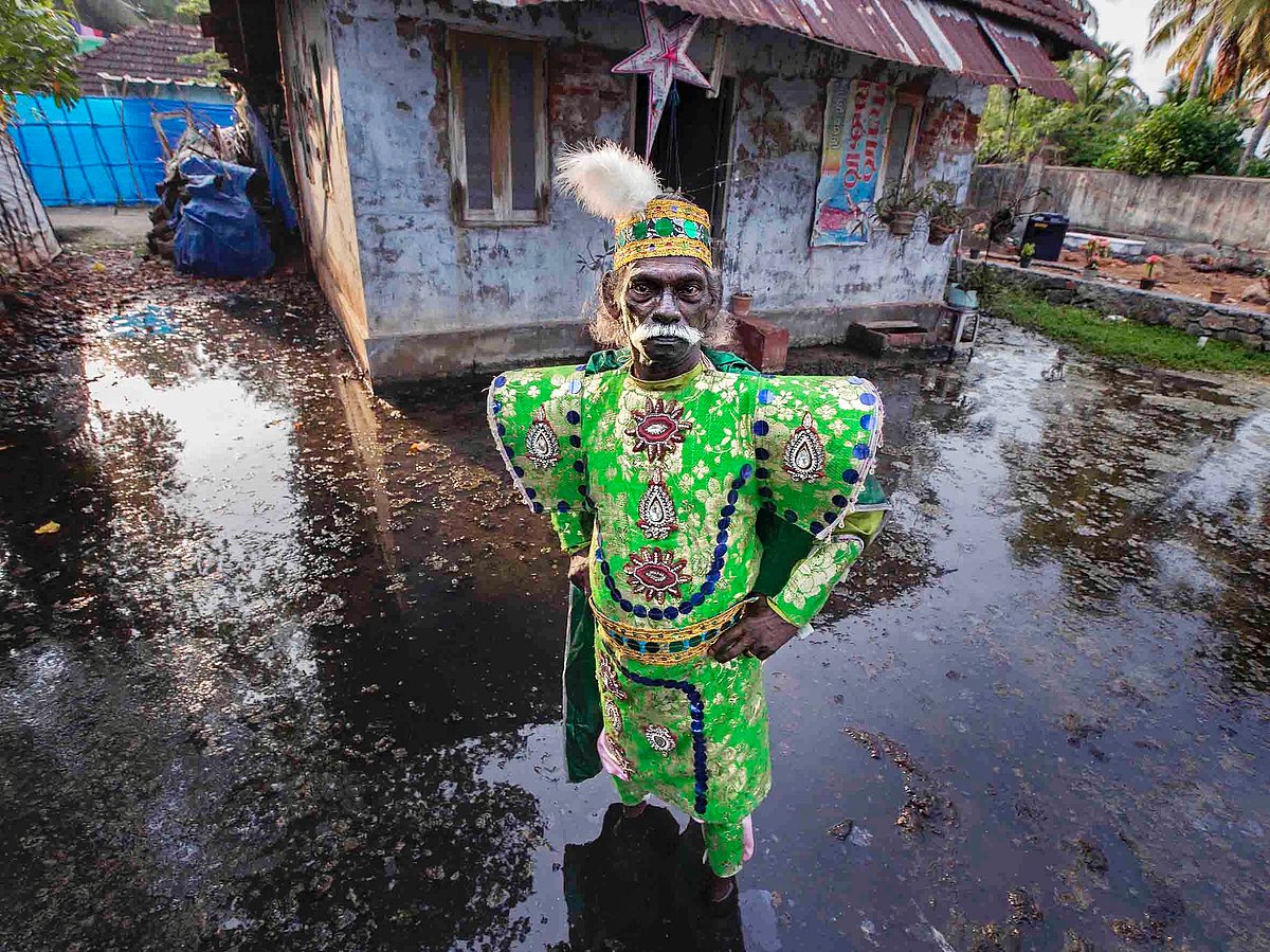 But reality is rarely that simple. Take, for instance, Chavittunadakam (Chavittu, in Malayalam meaning stamping and Nadakam, drama), a lesser-known theatrical tradition from coastal Kerala. It’s the subject of Kodungallur-based photographer K. R Sunil’s ongoing exhibition Chavittunadakam: Storytellers of the Seashore at Fundação Oriente, Panjim. His compelling visual storytelling immerses viewers in a telling narrative of the lives of the actors, while drawing attention to the environmental challenges facing the coastal village where it thrives.
