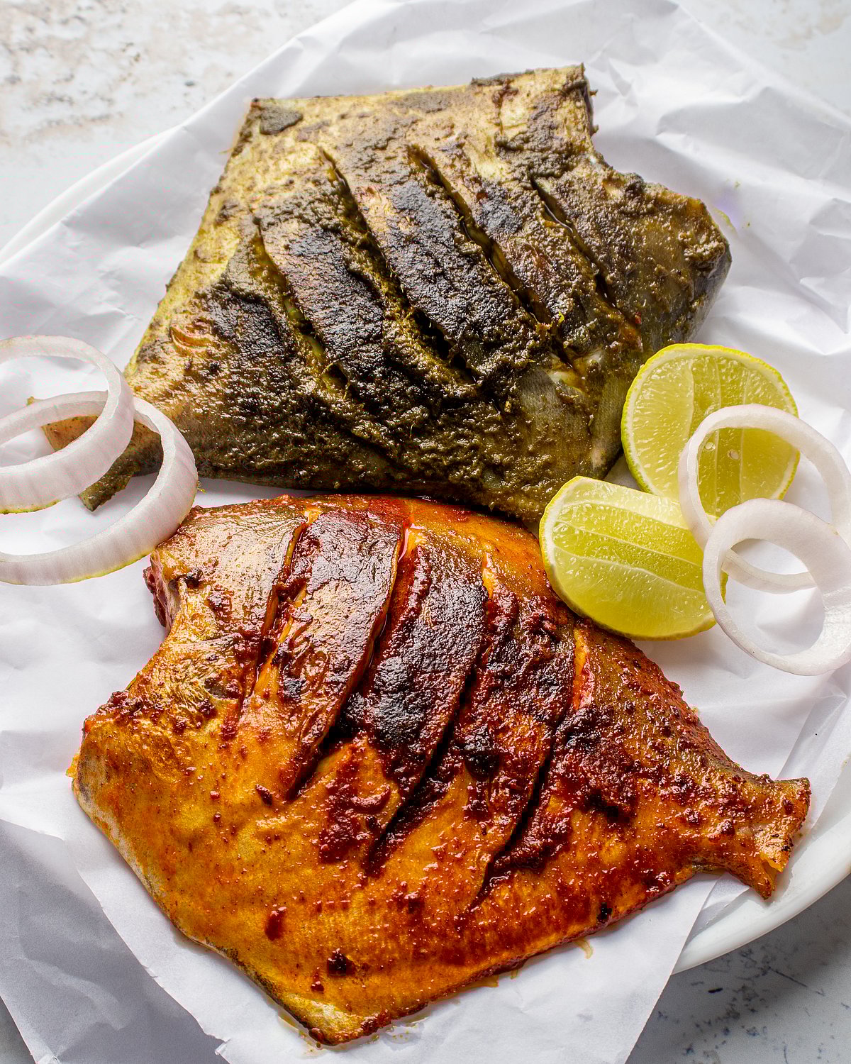 Method: Sauté the onion in oil till translucent. Soak the rest of the spices in lemon juice for 10 mins. Add the soaked spices along with the onion in a grinder and make a smooth paste. Add more salt if required. Rub this paste on a large Pomfret. Make sure you slit the Pomfret on both sides to allow the masala to seep in and season the fish well.