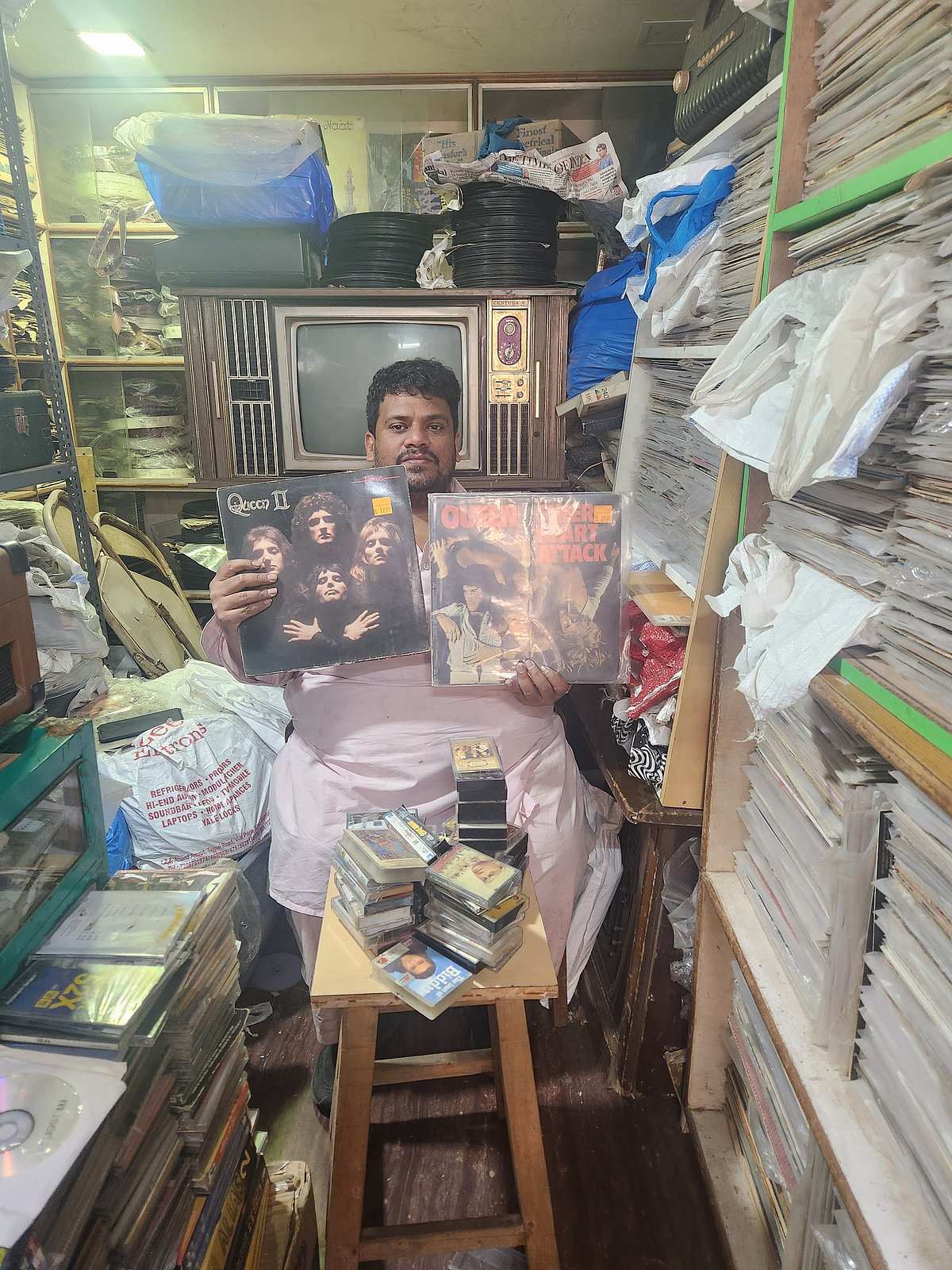 The analogue system has a much distinct sound quality. Ghulam Hussain of Haji Ibrahim Records is the second generation selling and repairing old music systems, records, cassettes, and CDs at Chor Bazaar. He shares, “The sound coming from the old music systems, like Gramophones, touches the soul. Whoever made these records and put music in them has done the job with great care and passion. That’s why the outcome is so different from the digital system. Whether it is Mohammad Rafi, Lata Mangeshkar, Laxmikant and Pyarelal and Kishore Kumar, the music comes to life when listening to records.”