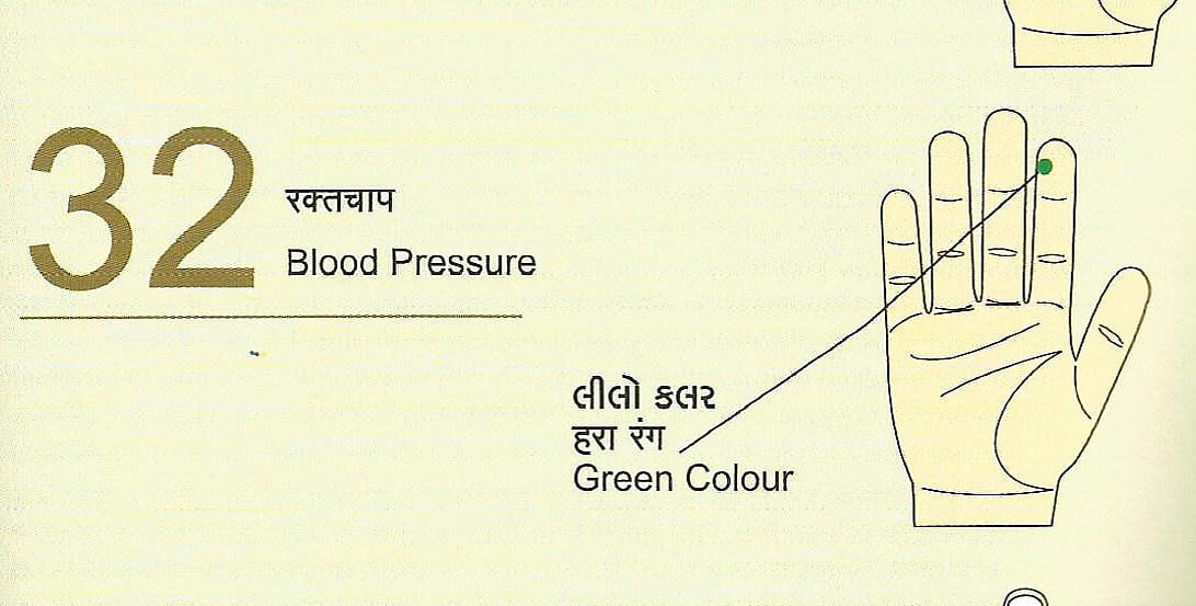 With the help of colour therapy, it’s possible to control the rising blood pressure. All you need is some sketch pens or colour pens and with the help of it, draw a dot on the pressure points on fingers. Apply black, green, blue and dark blue colour on the fingers, like shown in the images below, by dong this simple technique you would be able to bring down your increased blood pressure. Also, by pasting a byol magnet on the left thumb on pressure point, GB20, one could easily get away from increased blood pressure.