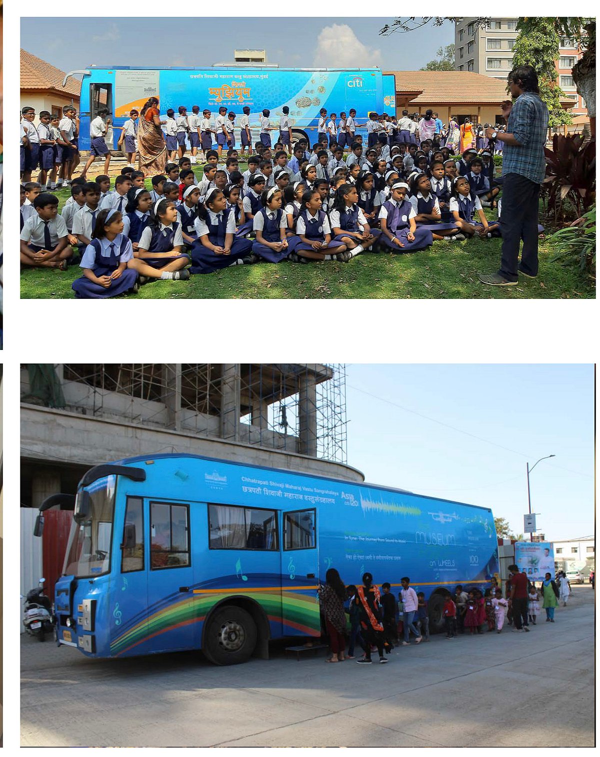 Unveiling its commitment to outreach, the museum presents its flagship initiative—the CSMVS Museum on Wheels. For over seven years, two state-of-the-art buses have embarked on journeys far and wide, traversing the city, suburbs, and rural India, carrying captivating exhibitions on a multitude of themes. Equipped with display cases, demonstration kits, art supplies, audio-visual equipment, and digital interactives, these customized, air-conditioned buses ensure a memorable experience for all. Welcoming schools, colleges, cultural institutions, museums, historic sites, fairs, housing complexes, neighbourhoods, malls, and government departments, the Museum on Wheels offers educational tours in multiple languages, including Marathi, Hindi, English, Gujarati, and Kannada. With a ramp for wheelchair accessibility and CCTV surveillance for security, these exhibitions and activities are provided free of charge. To date, the Museum on Wheels has connected with a staggering 14,66,118 visitors in person and 1,20,806 online, leaving an indelible mark on countless lives.