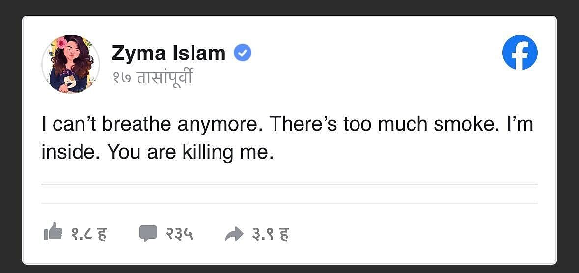 As smoke filled the building, journalists inside struggled to escape. The Daily Star reporter Zyma Islam posted a desperate message on Facebook during the ordeal.