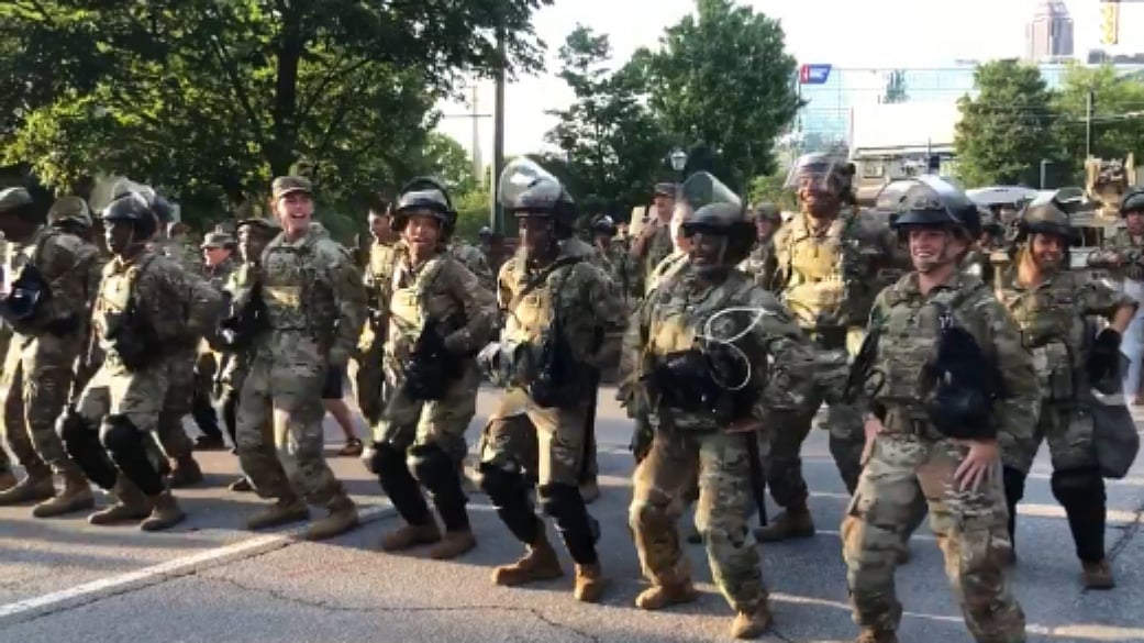 On Friday, just before the 8 PM curfew, a group of soldiers was spotted dancing on the Macarena in downtown Atlanta.