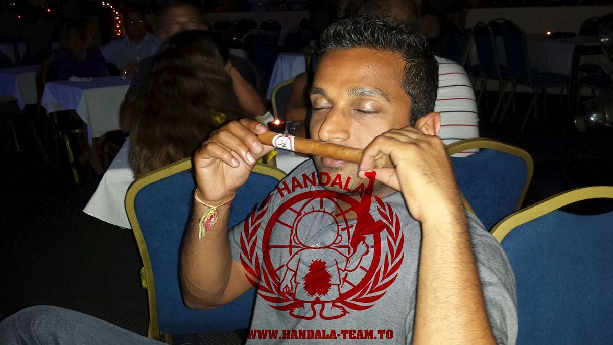 The photographs included Patel sniffing and smoking cigars, and making a funny face while taking a picture of himself in the mirror with a large bottle of rum.