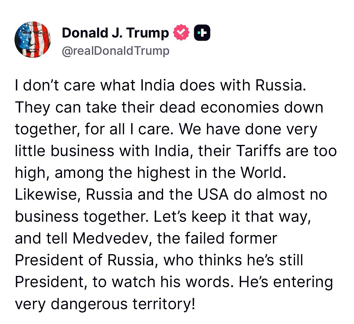 Although officially a scheduled engagement, Doval’s visit takes on added weight in light of US President Donald Trump’s recent tariff threats to India. Trump has announced plans to slap a 25% penalty tariff on India, accusing the country of being “Russia’s largest buyer of energy” and one of its top defence customers. He controversially said that India and Russia “could take their dead economies down together.”