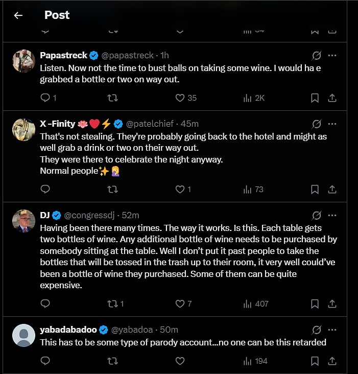 Yes, stealing reportedly took place alongside the shooting at the White House Correspondents’ Dinner. A clip of press members who attended the high-profile event is going viral for allegedly taking wine bottles after the incident.