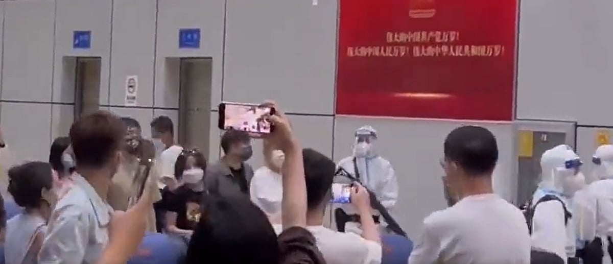 Video shared on social media purported to show a tense scene at the Xishuangbanna airport in China's Yunnan Province, wherein security personnel armed with assault rifles enforcing China's extremely Zero Covid policy confronted passengers getting frustrated with long queues to exit the airport.