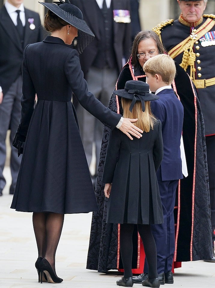 Prince George, 9, and Princess Charlotte, 7, will be among the youngest of the 2,000 guests at the funeral in Westminster Abbey as the two older children of Prince William and Kate form part of the royal family members to follow the Queen's coffin as it enters the church for the funeral service conducted by the Dean of Westminster.