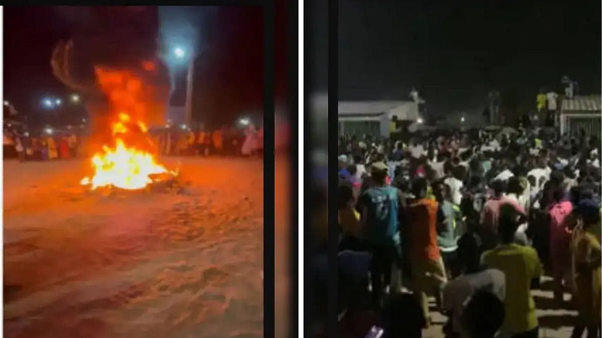 Tragically, within 24 hours of the burial, a large crowd exhumed Cheikh Fall's body and set it ablaze in a public display of hatred and intolerance. Despite the horrifying nature of the incident, it drew hundreds of onlookers. Following this heinous act, four suspected masterminds were arrested on Monday, as captured by images from the scene.