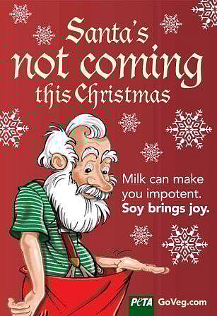 Just in case you thought PETA liked children, they came out with this incredibly inappropriate ad commenting on Santa’s imagined sexual dysfunction. All we want for Christmas this year is for PETA to stop making references to Santa’s erections…