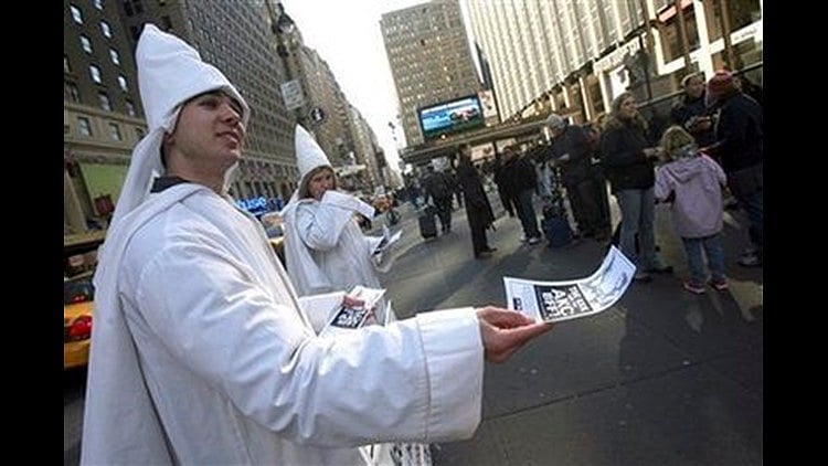 We’re not even sure what they are trying to say with this one. But apparently sponsoring a dog show of purebreds makes the American Kennel Club exactly like racist and violent individuals who want to eliminate minorities using tactics like violence and intimidation.