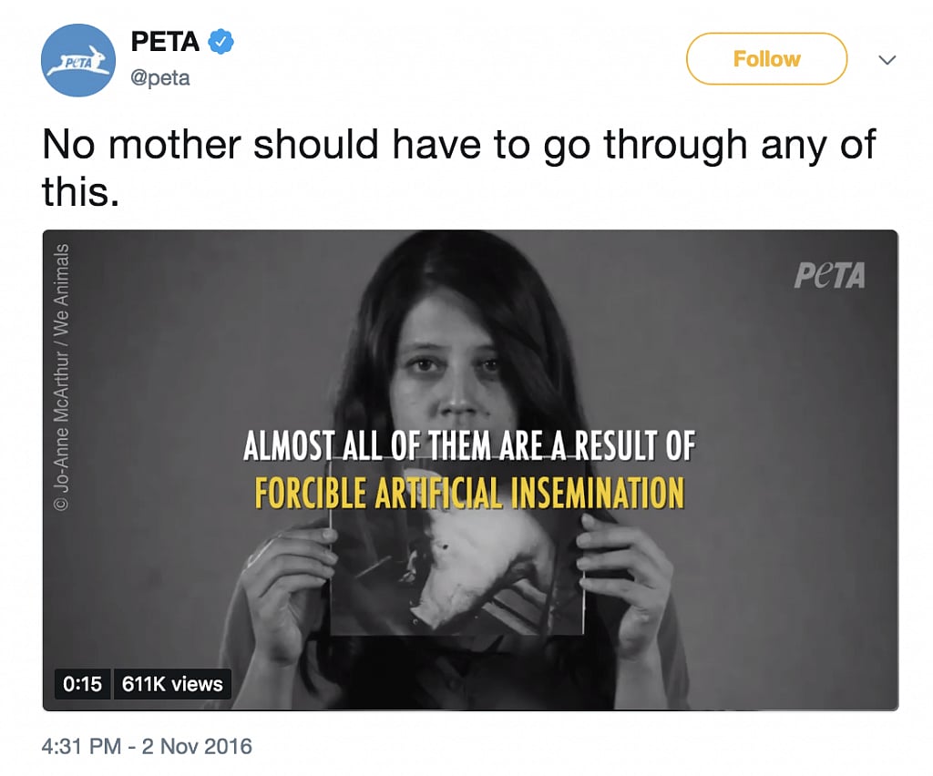 Comparing animals born into the dairy industry to human rape victims? Hmmmmmm… we’re not so sure that was the best move. But hey, it got people’s attention, which is really what PETA’s messaging is all about. And plenty of people took to Twitter to express their disdain for advertising they thought was insensitive.